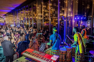 The gala was privileged to have talented entertainers who kept the atmosphere lively throughout the event. Russel Abelwhite, a classically trained opera singer, sang as guests entered into the seating area. Meanwhile, caricaturist and magician, René van Hooren drew quick sketches for guests throughout the night. Doetmaes Irish Men's choir sang a round of classic ballads to welcome guests back into the party hall, and Soul Qualified, an Old & New Soul band performed nostalgic songs from decades past. In between Soul Qualified's sets, Oké Sène, an African drum group, got guests dancing to intense drum beats with multiple encores.
