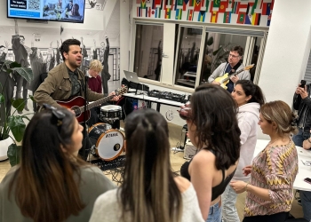 Andreas Ooijer, a Senior Lecturer at Wittenborg, kickstarted the karaoke before the special guest, Boris Cvetanovski, better known as Ris Flower, took the stage. The Macedonian singer-songwriter performed his original songs and popular covers.